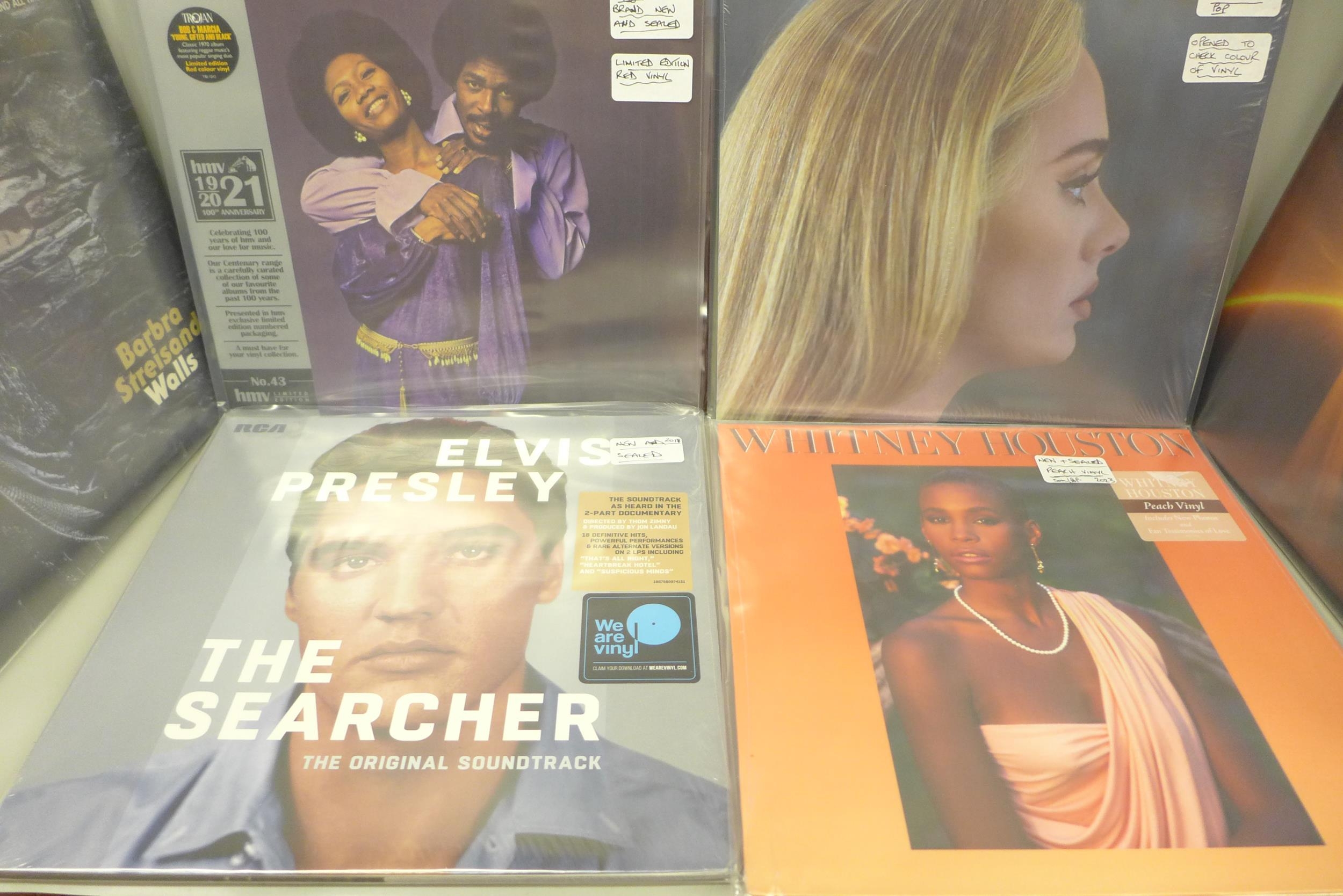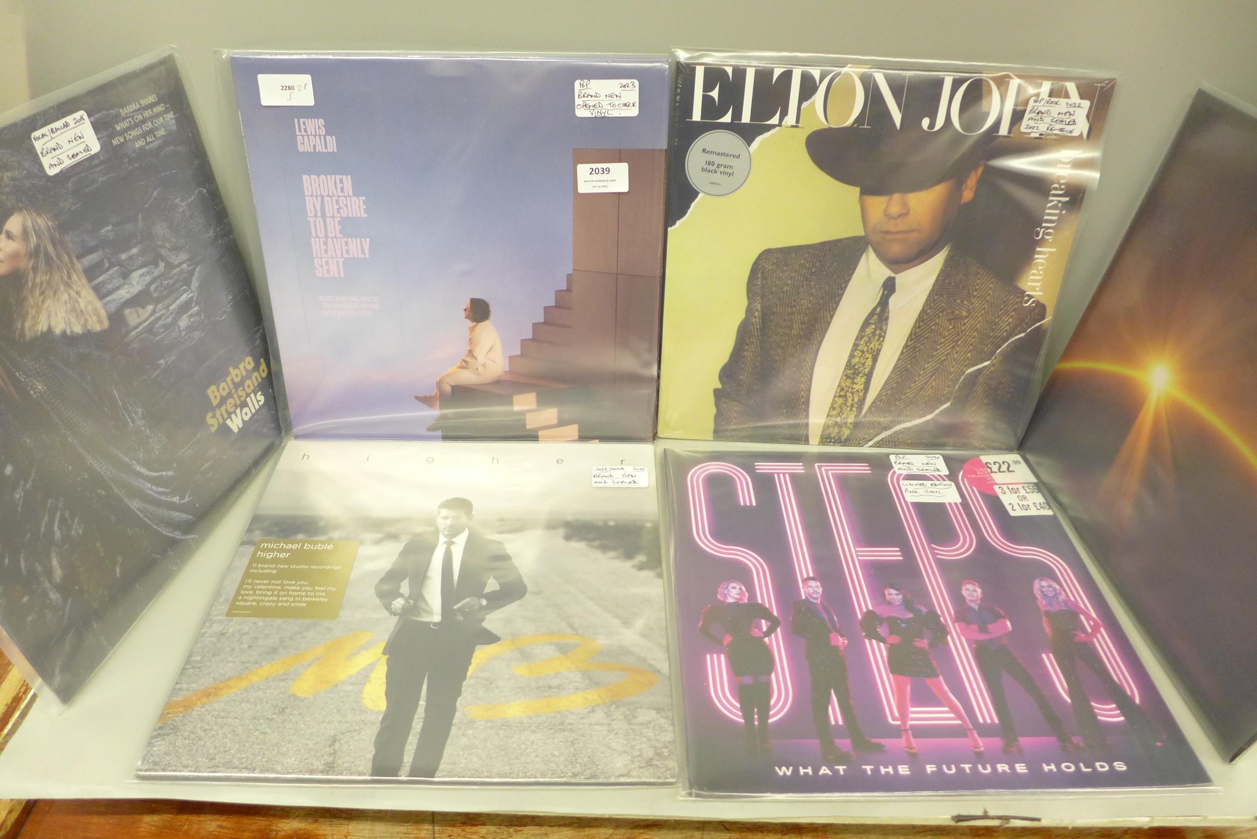 Ten pop records including Elton John, Abba, Lewis Capaldi, Adele, Whitney Houston, etc., (7 sealed)