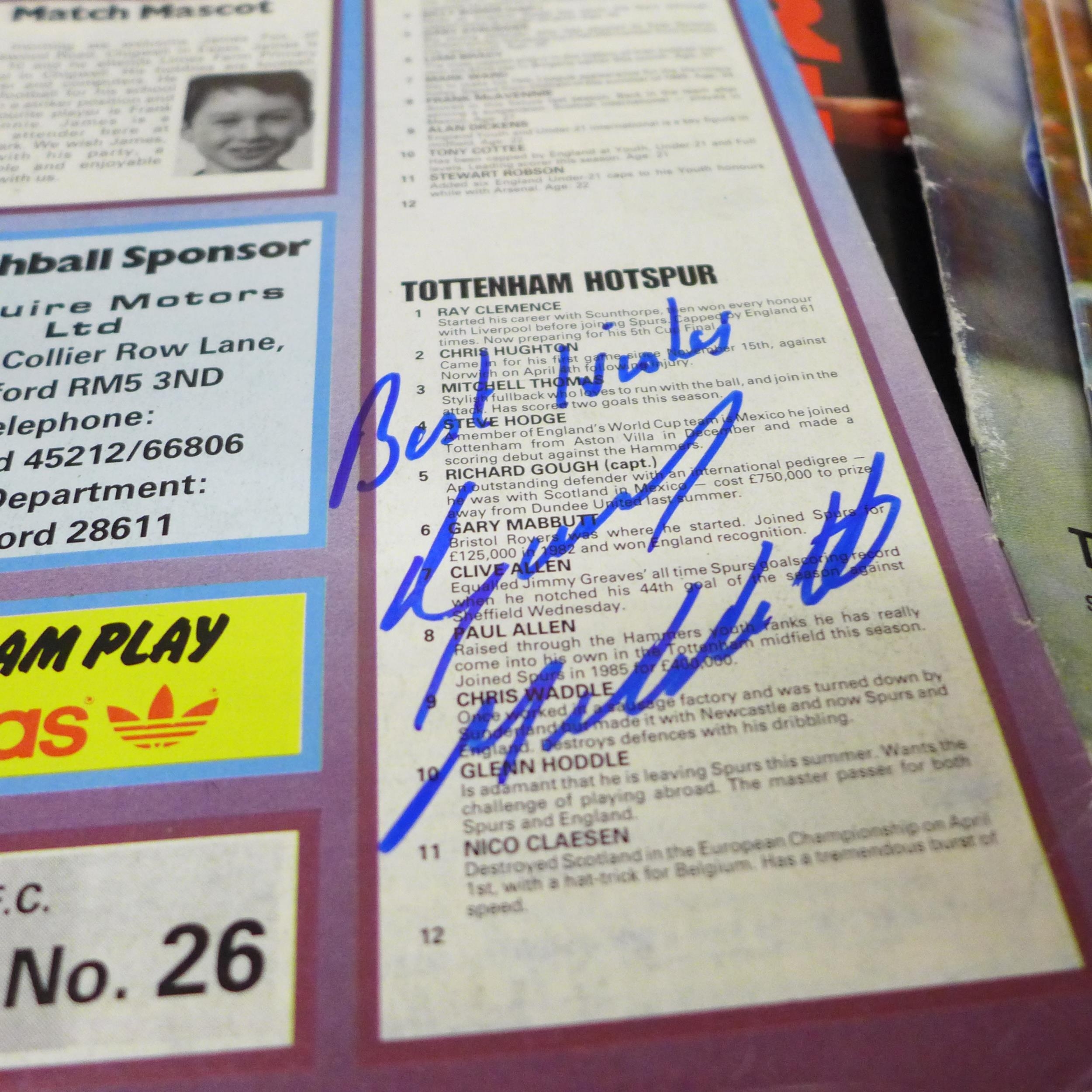 Football memorabilia; Tottenham Hotspur home and away programmes from the 1960s onwards, including one signed by Gary Mabbutt