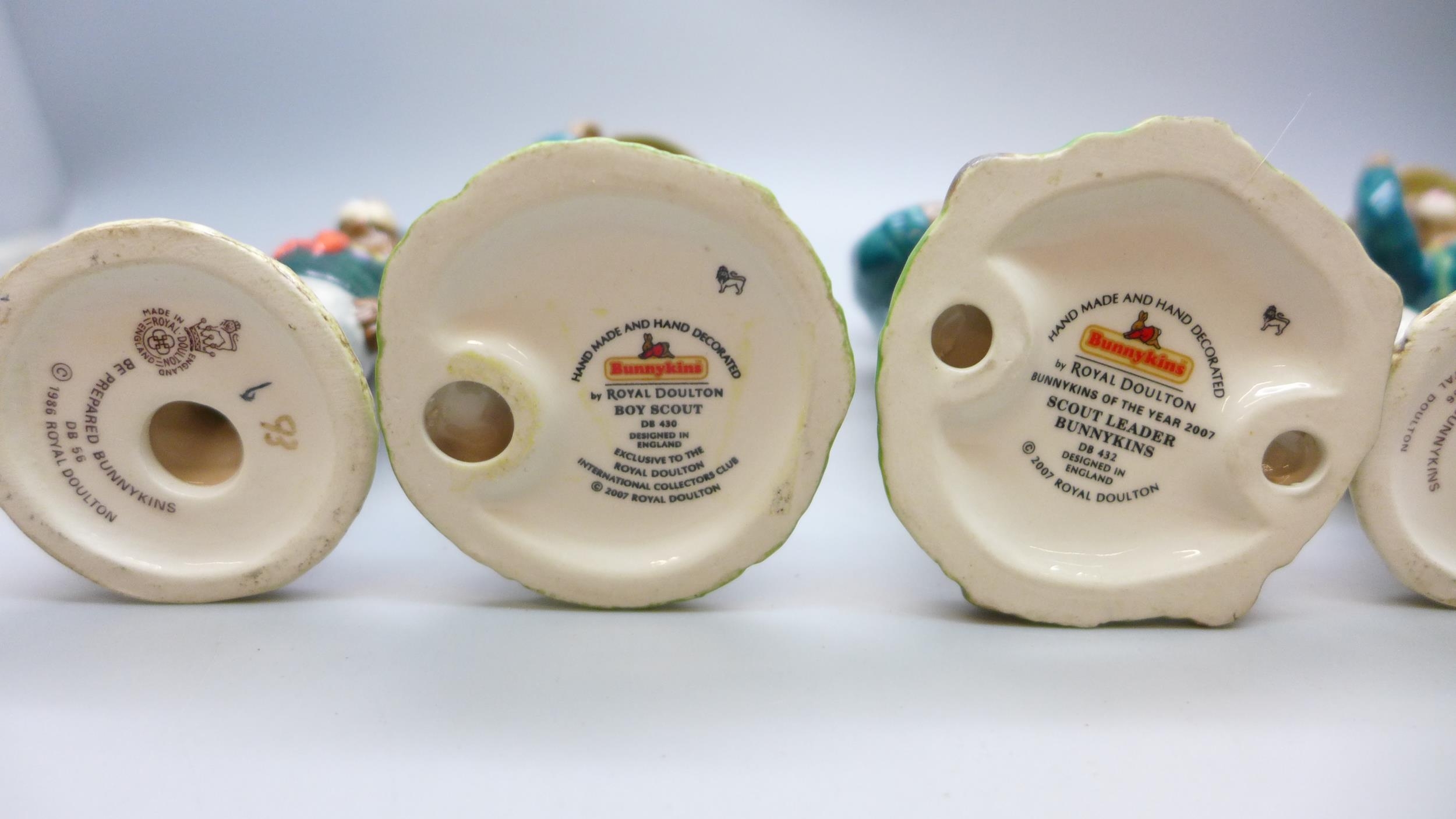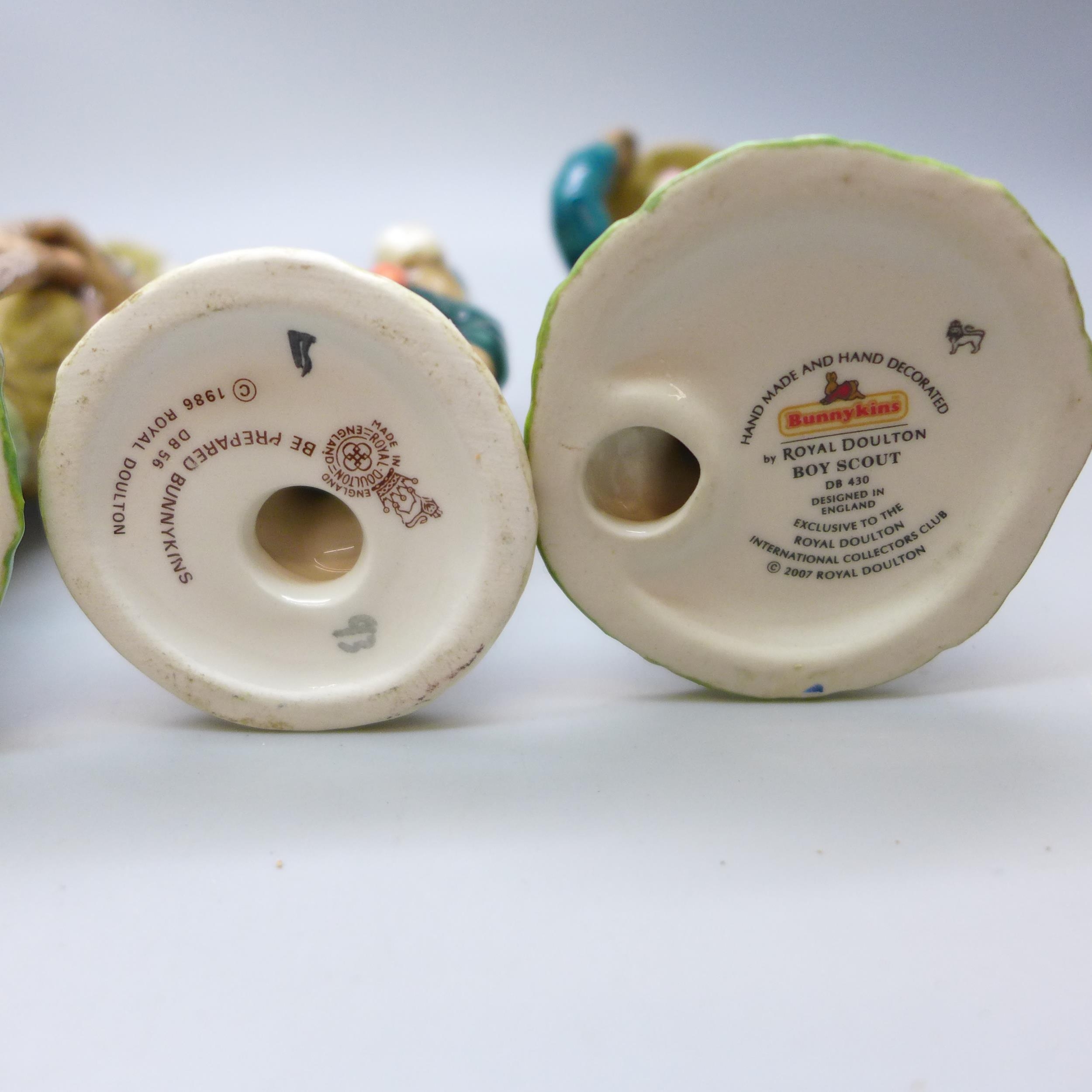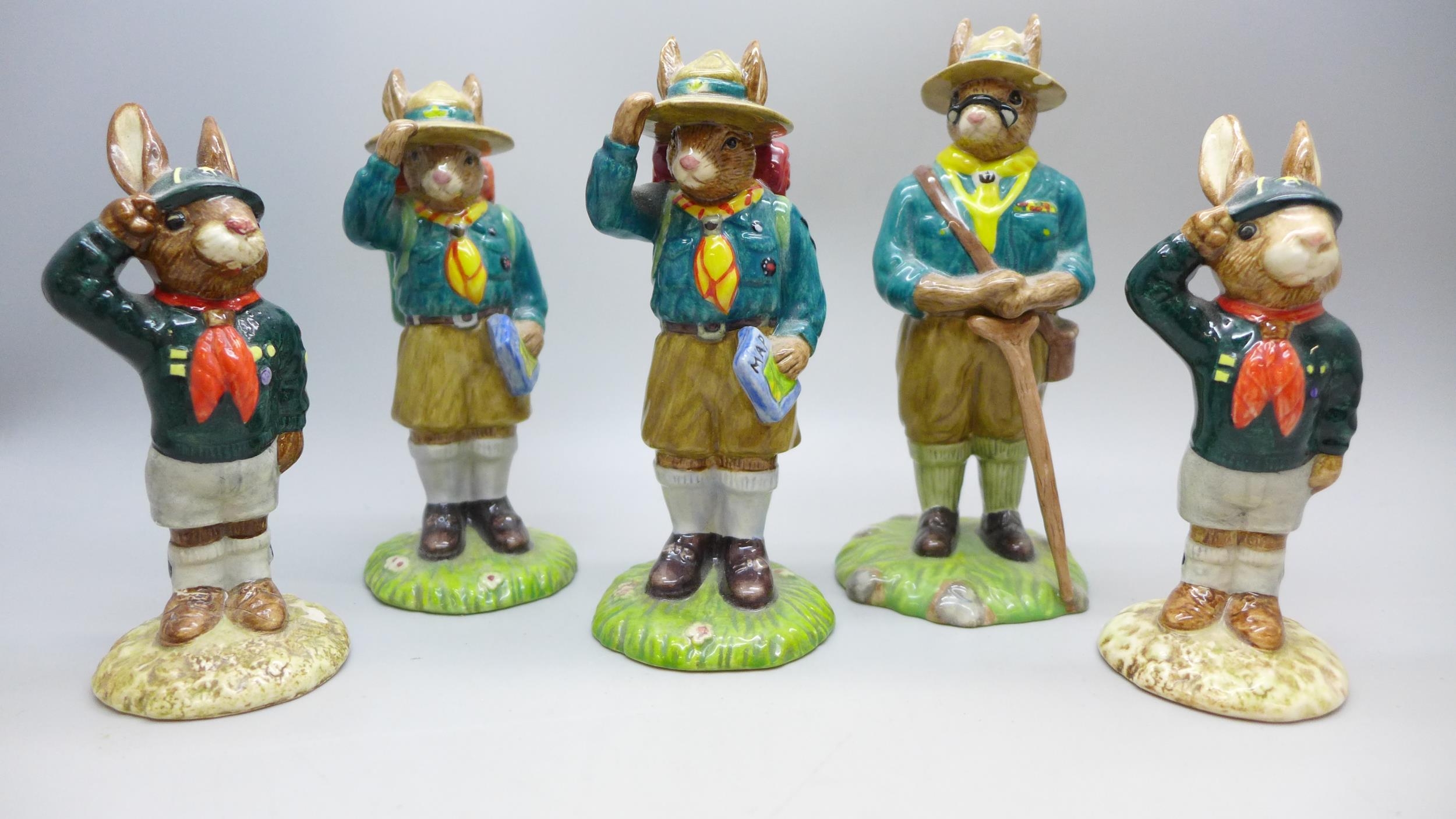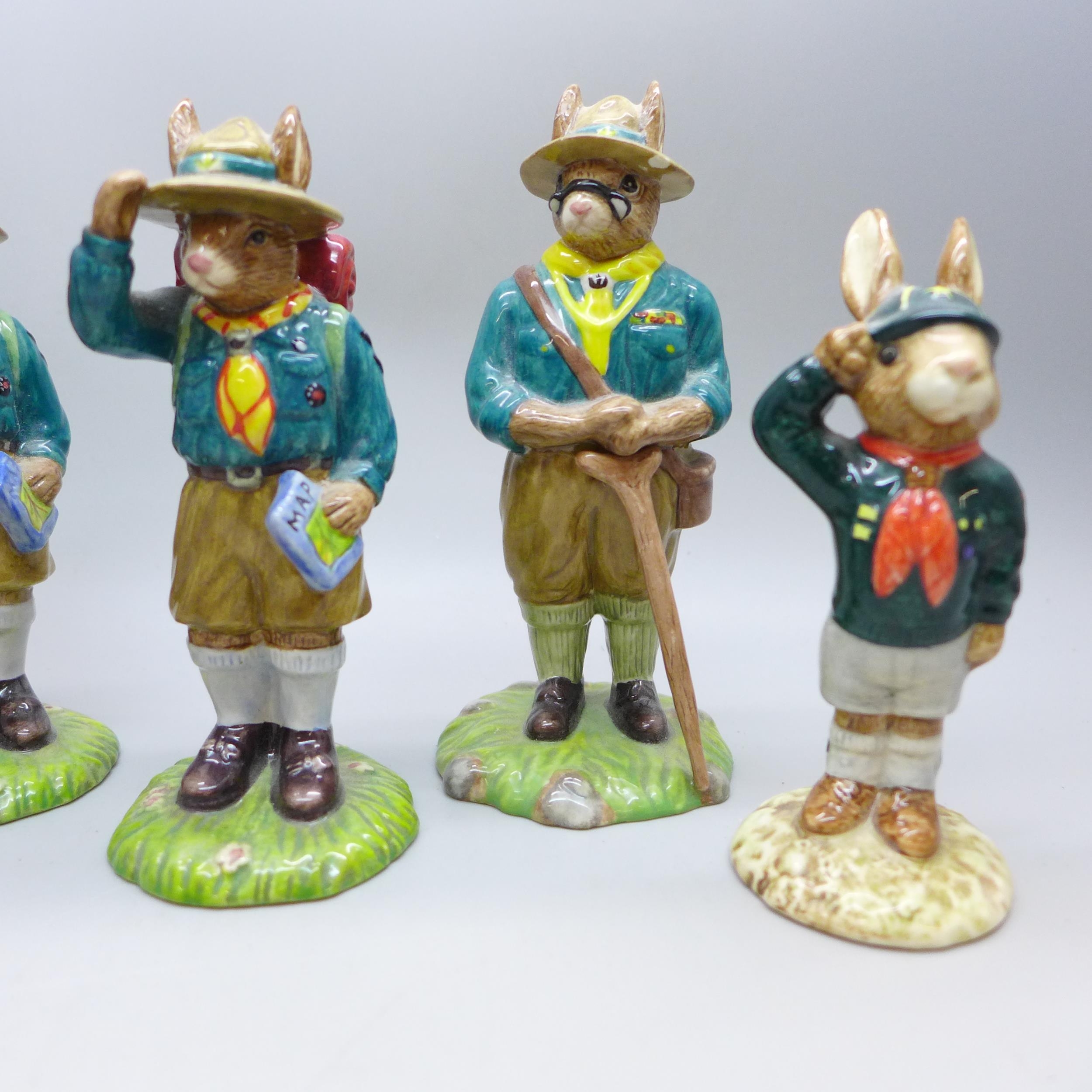 A set of five Royal Doulton Bunnykins boy scout figures, (le...