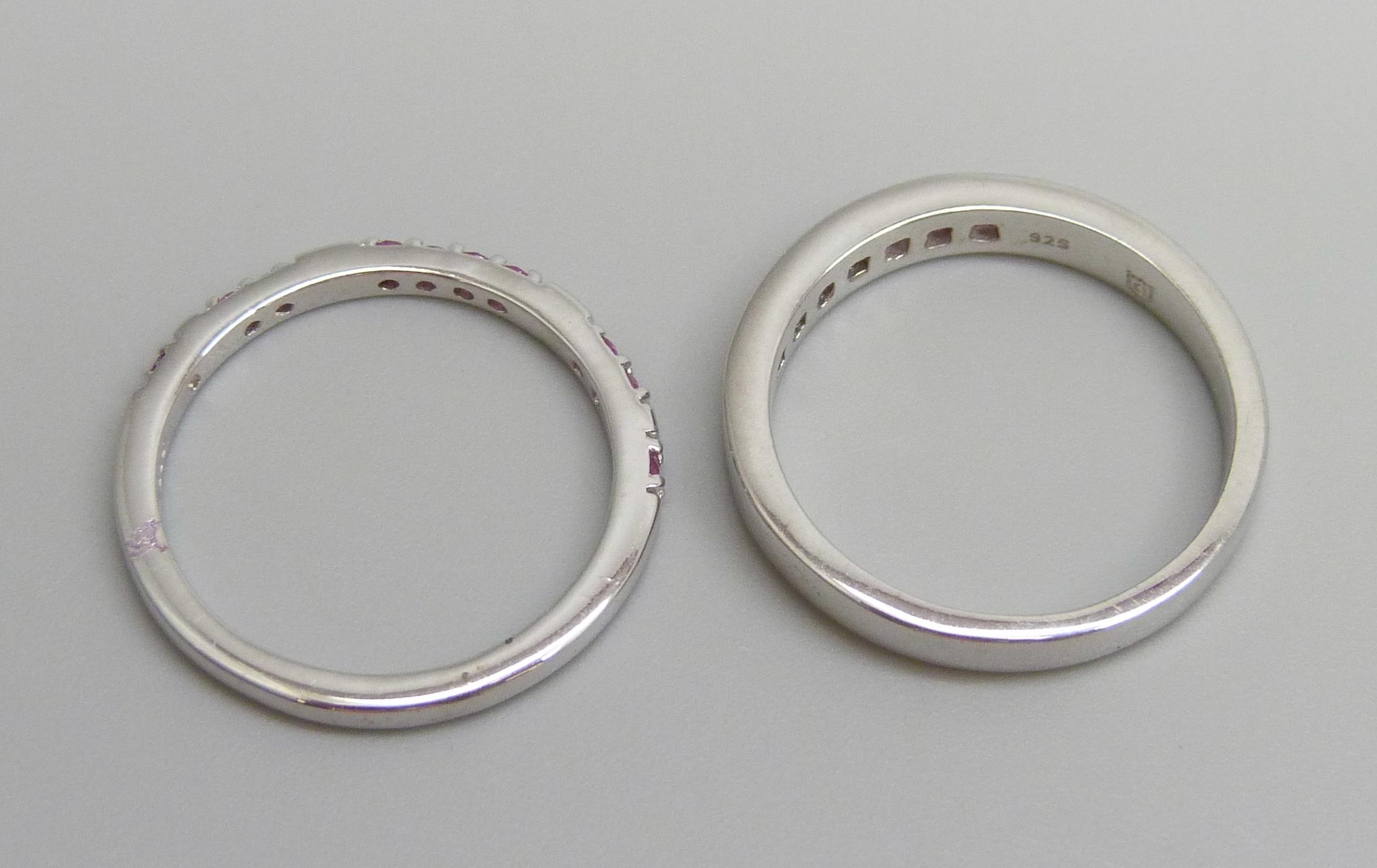 Two silver and pink sapphire rings, 4.3g total, with certifi...