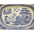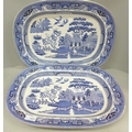 A pair of Staffordshire Willow pattern porcelain meat plates...