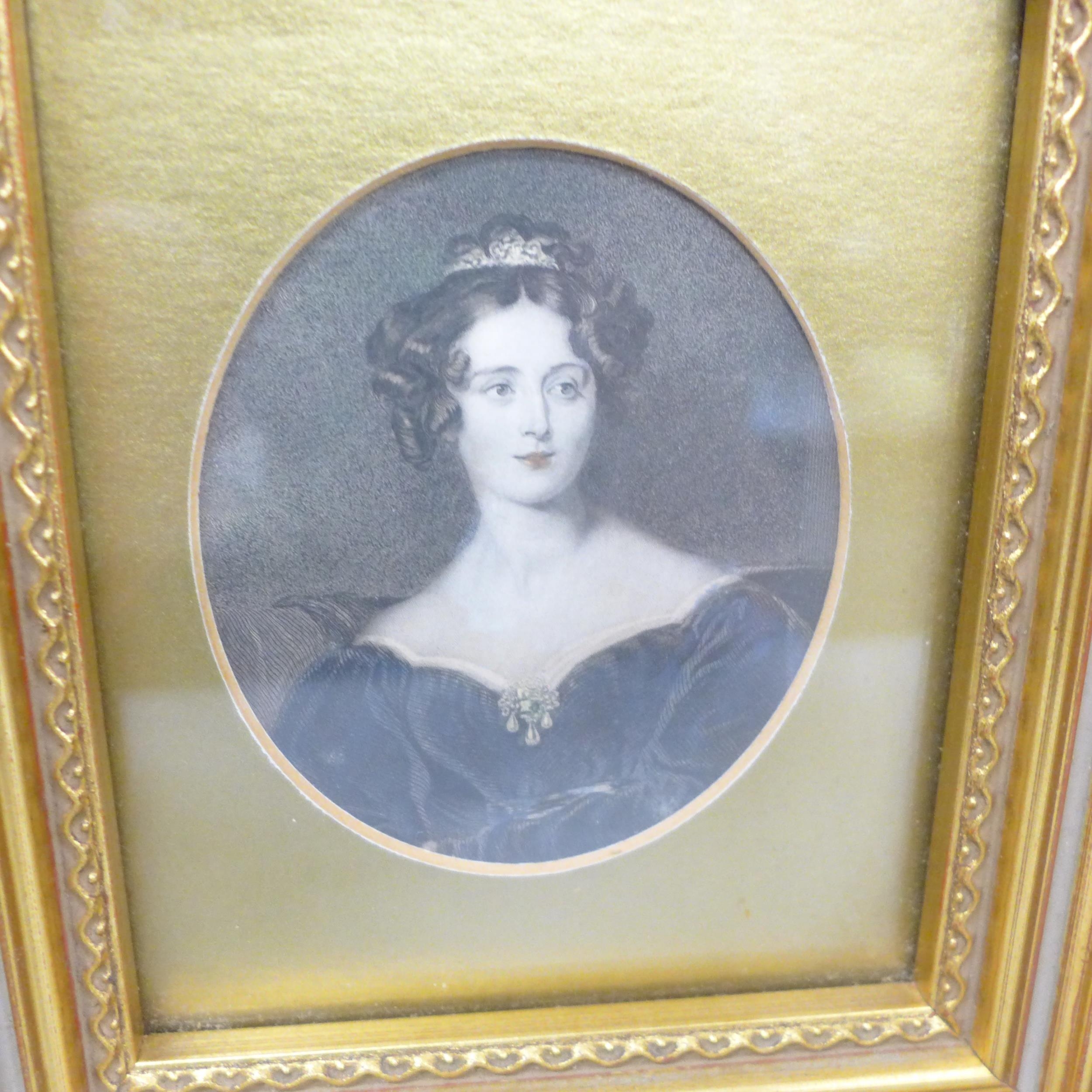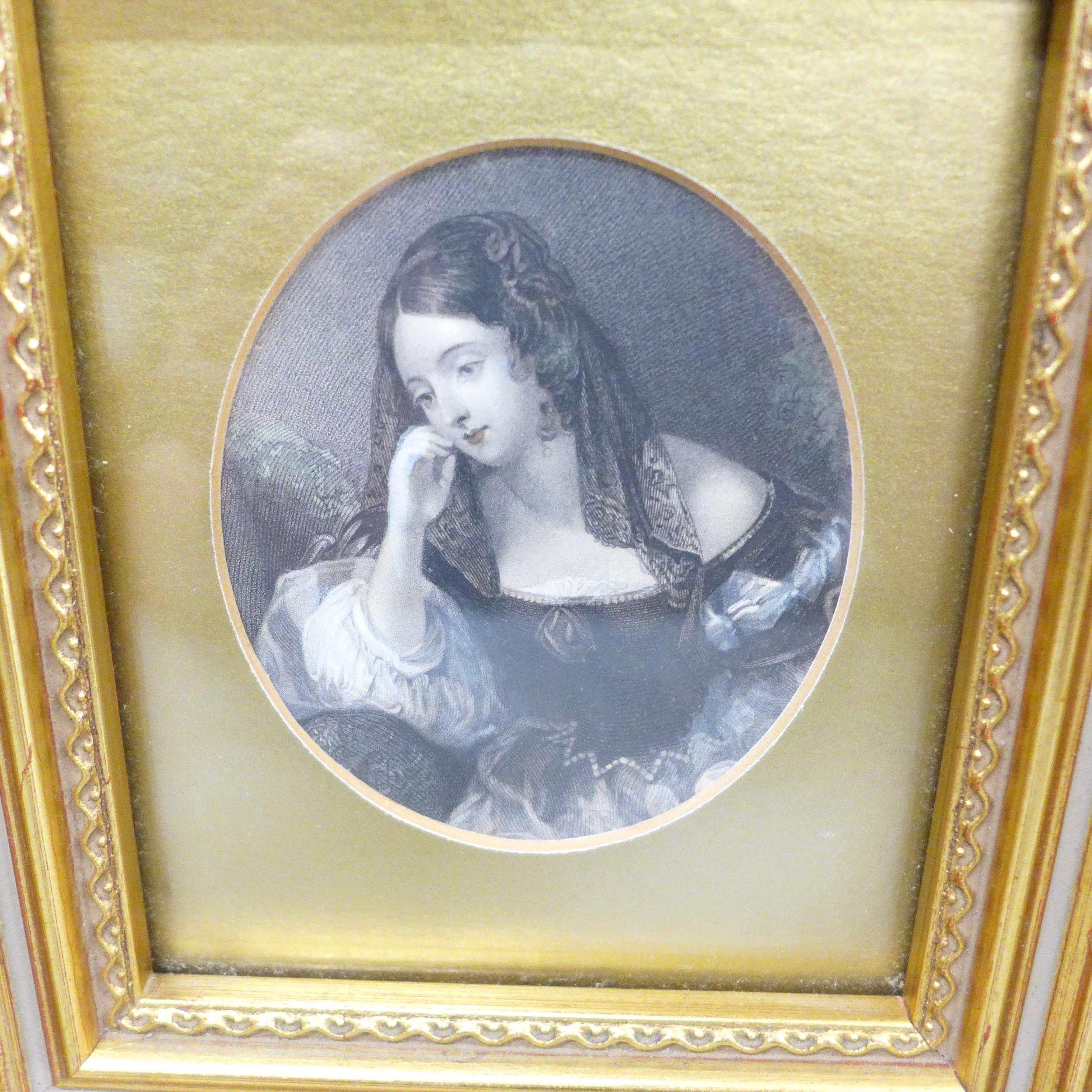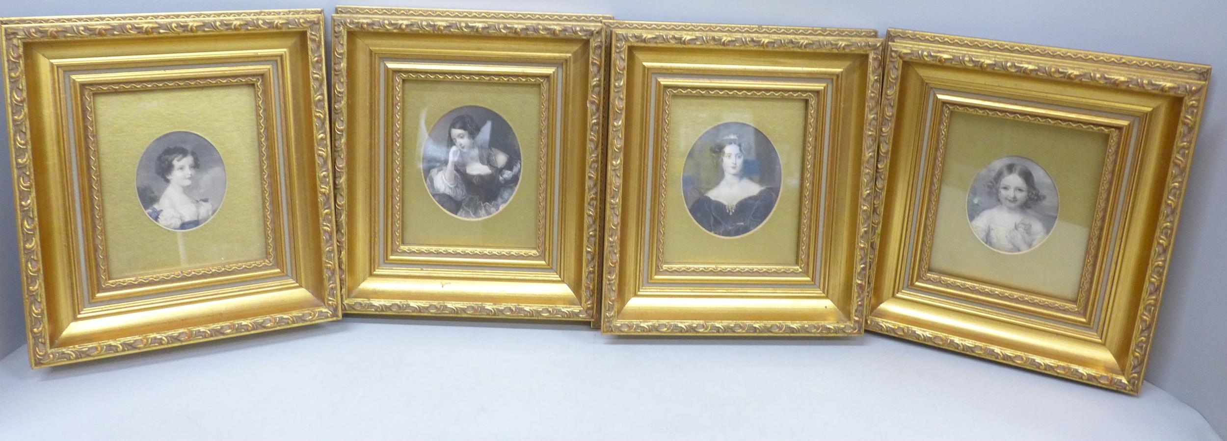 A set of four Victorian hand coloured engravings, circa 1830s, later frames, 20cm wide
