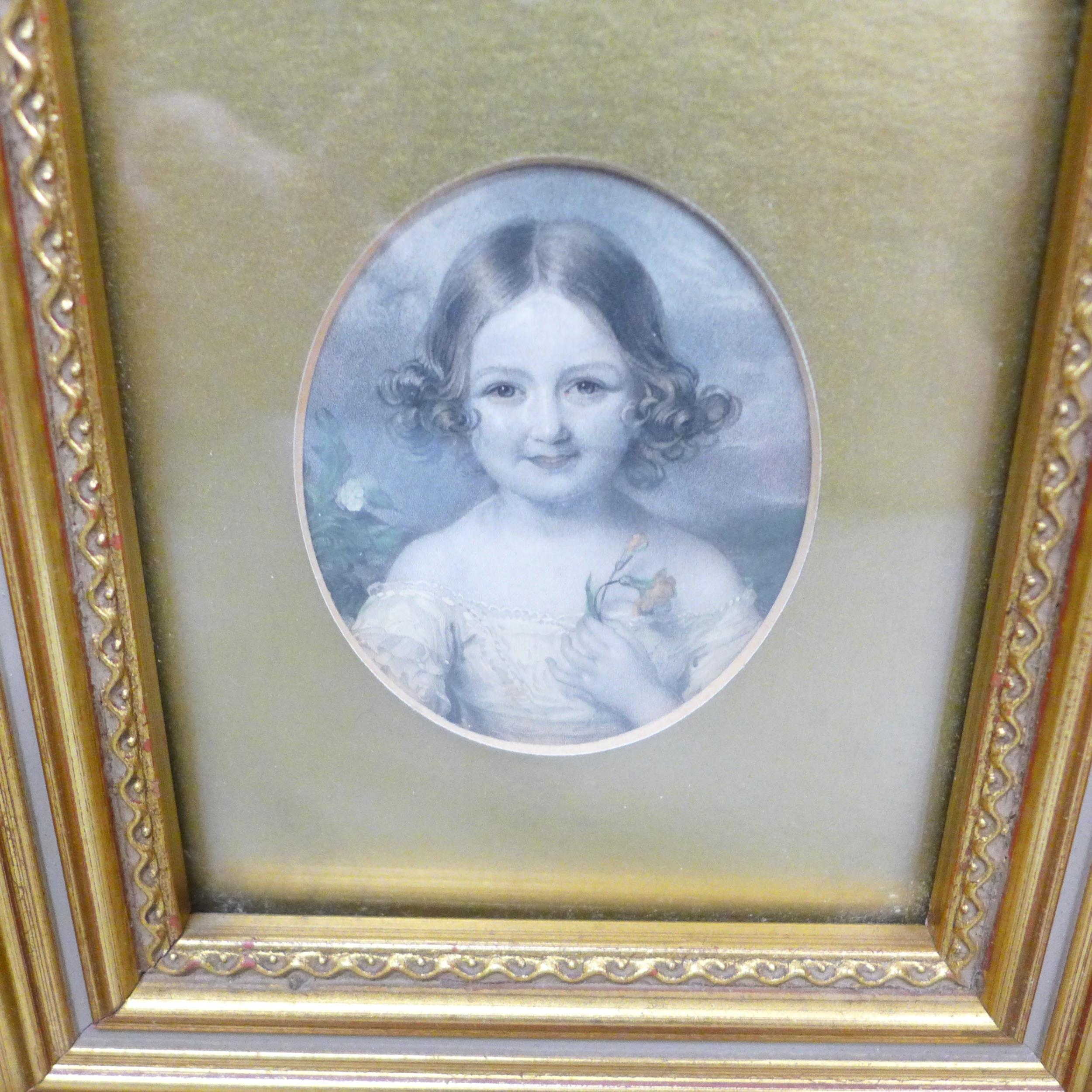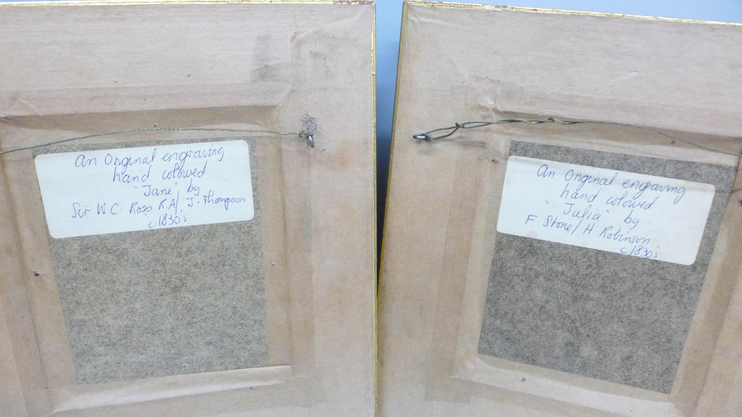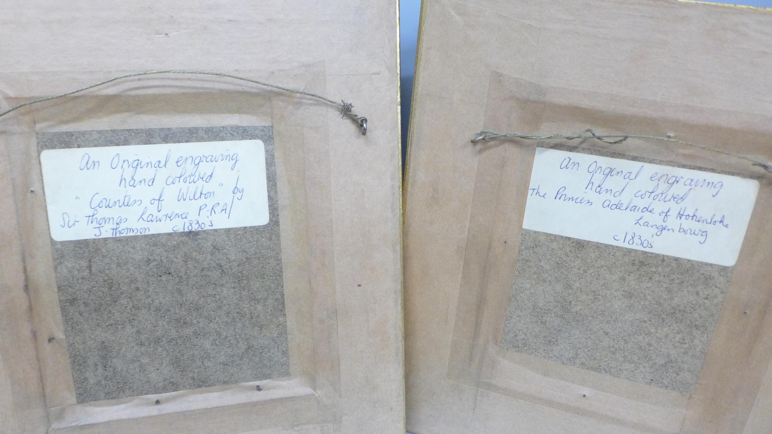 A set of four Victorian hand coloured engravings, circa 1830s, later frames, 20cm wide