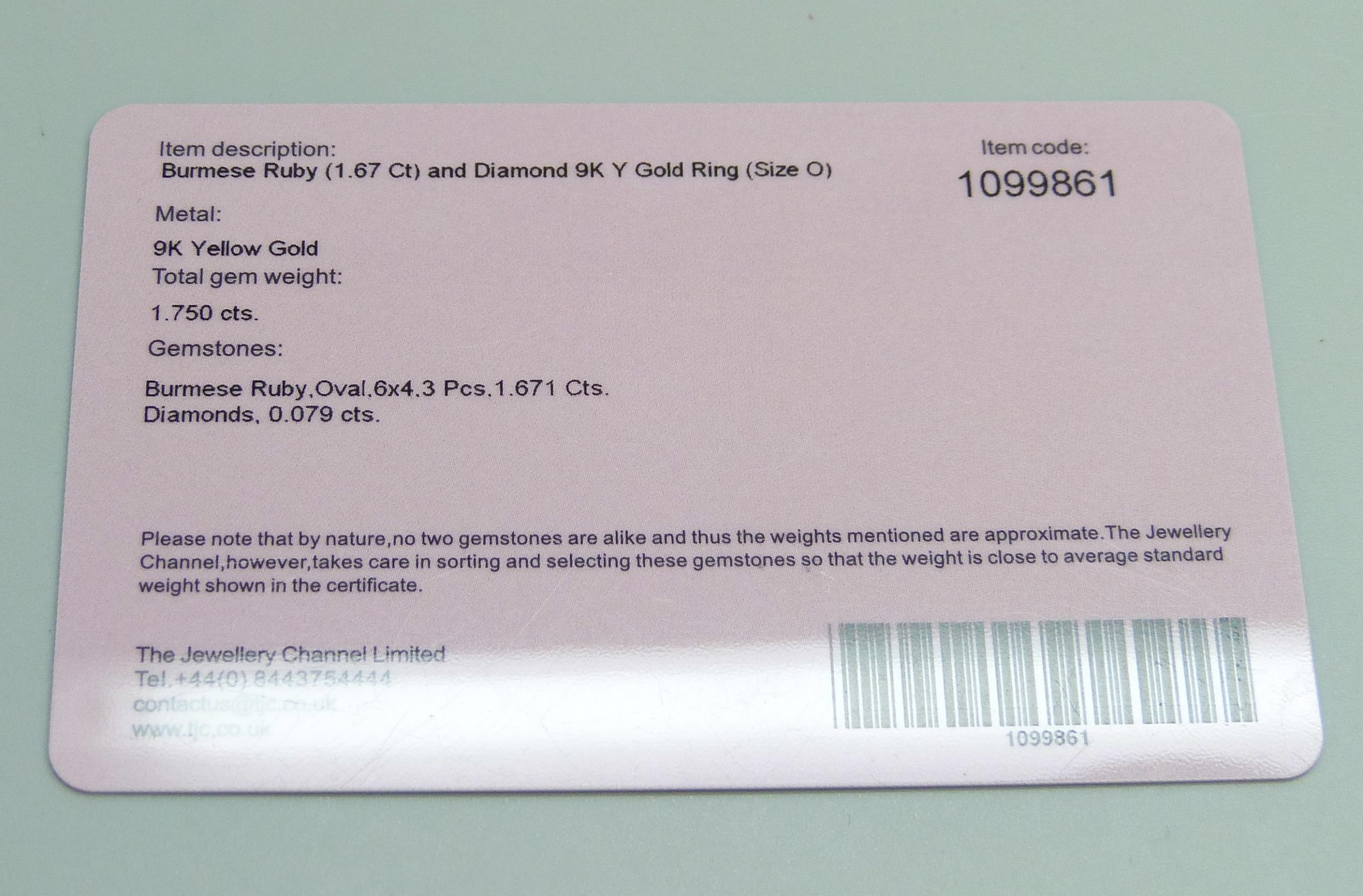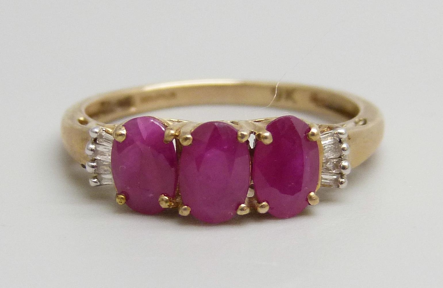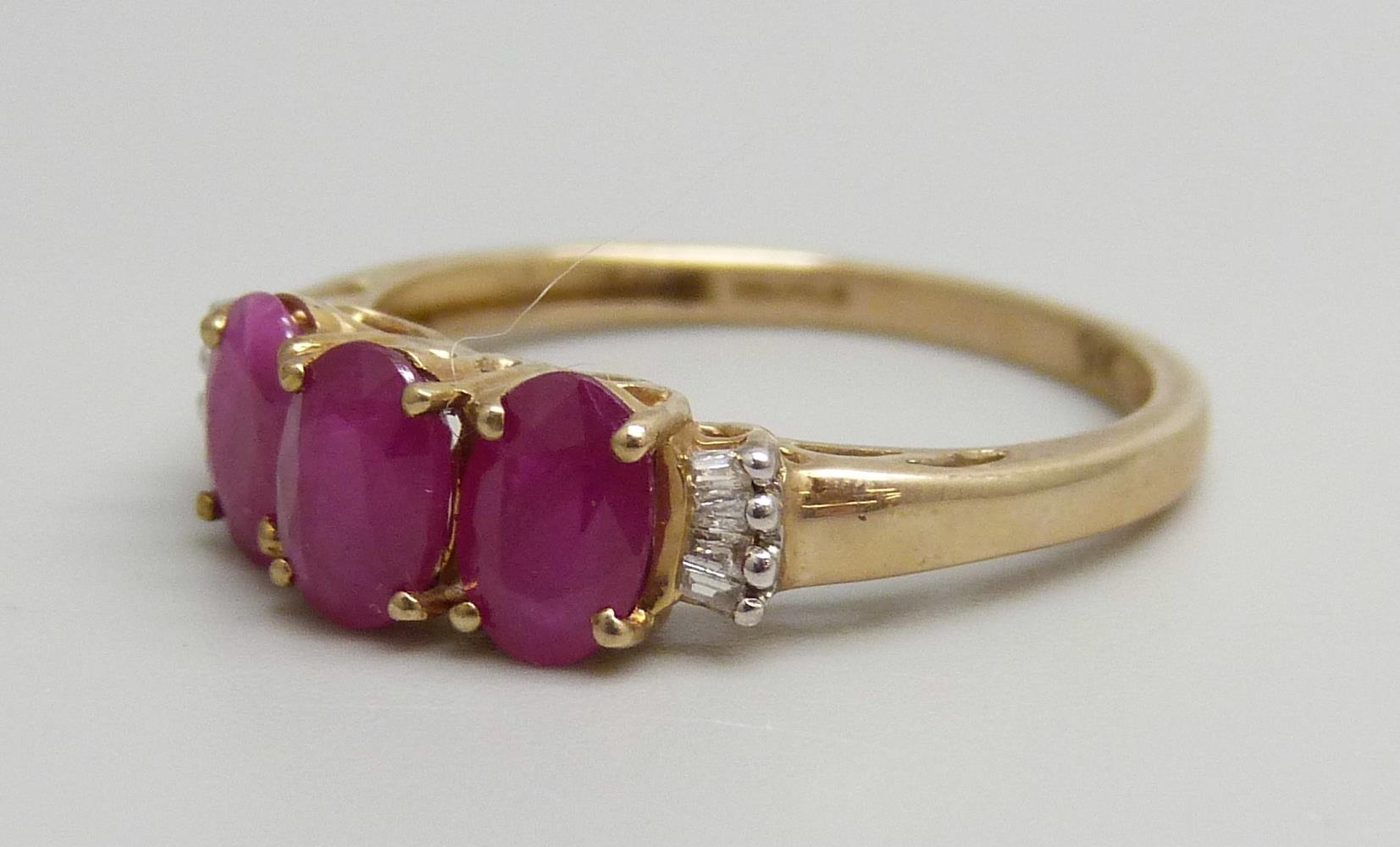 A 9ct gold, Burmese ruby and diamond ring, 1.8g, O