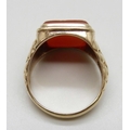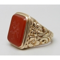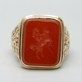 A 9ct gold ring set with a carnelian intaglio seal depicting...