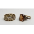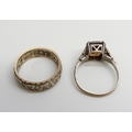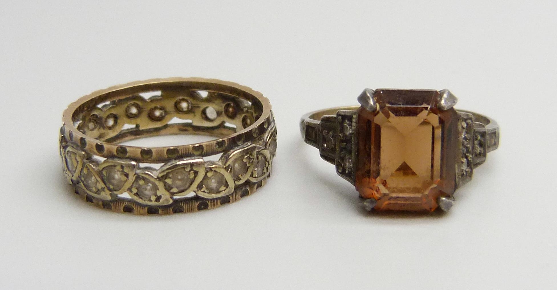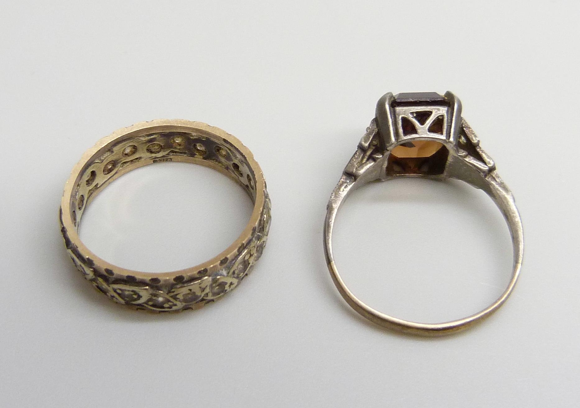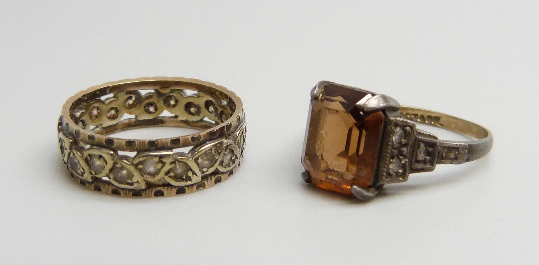 A 9ct gold, silver and white stone ring, M, and a 9ct gold a...