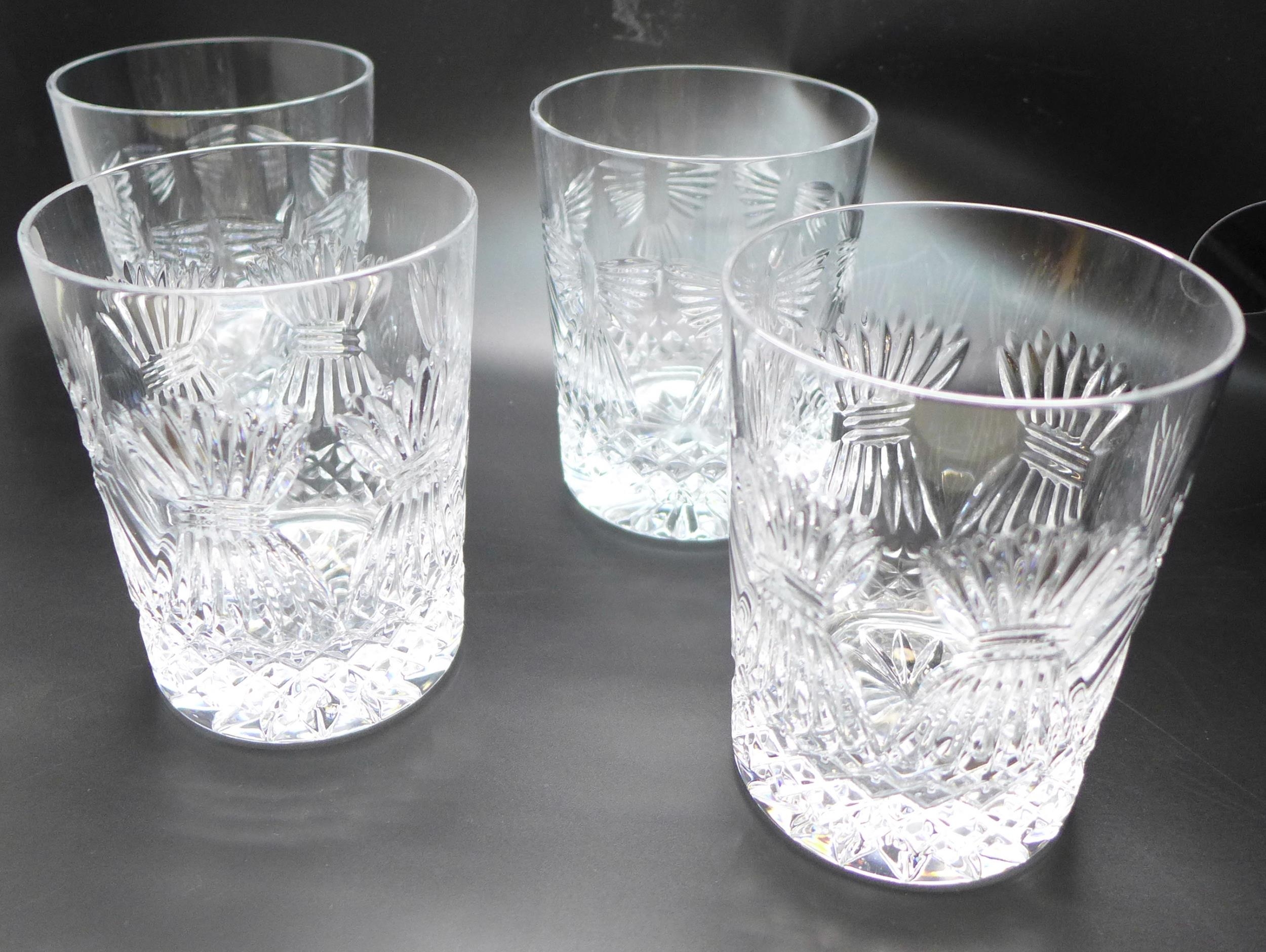 Two pairs of large Waterford crystal Millennium series double old fashion whisky glasses, signed *THIS LOT IS NOT AVAILABLE FOR PACKING AND POSTING