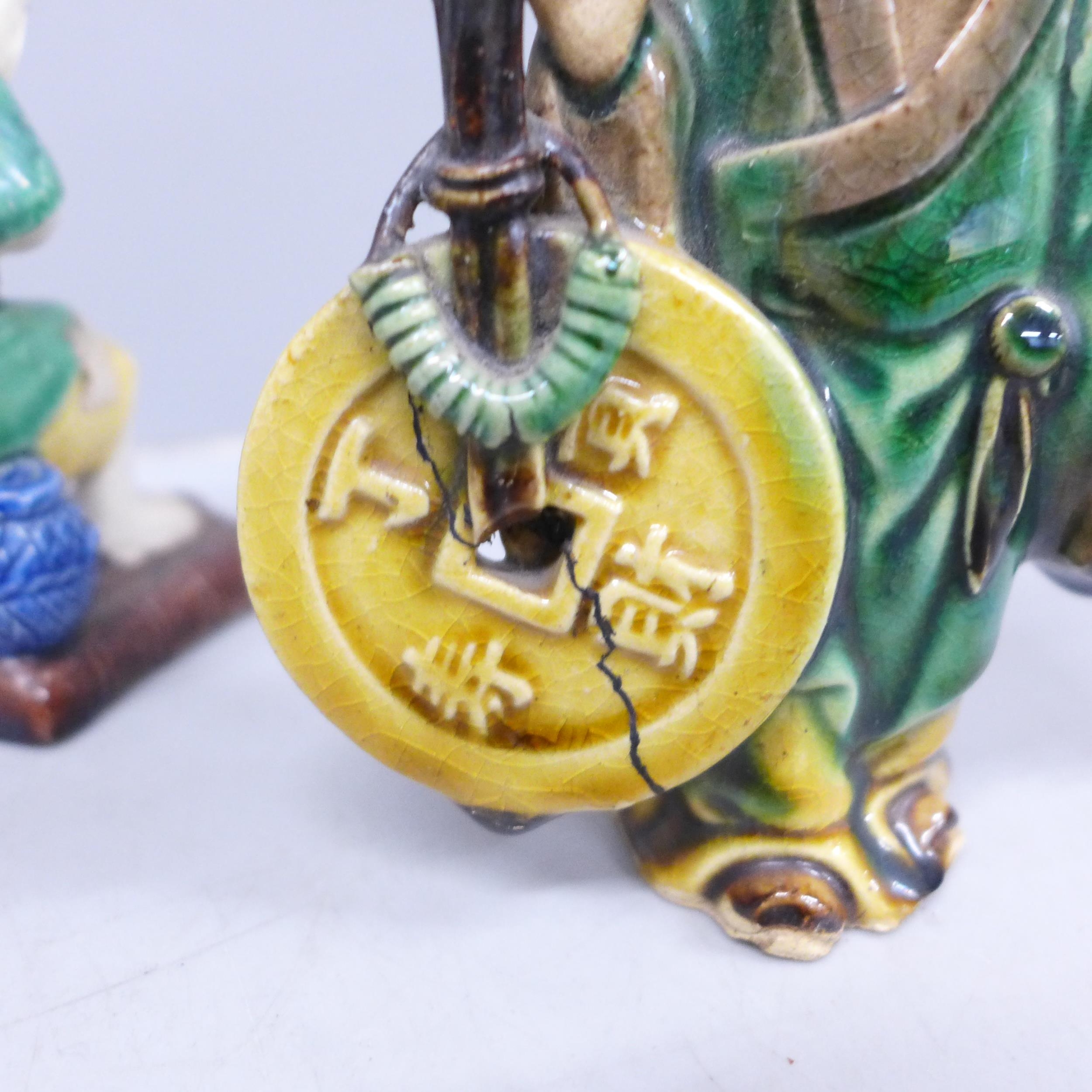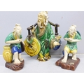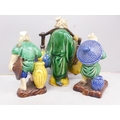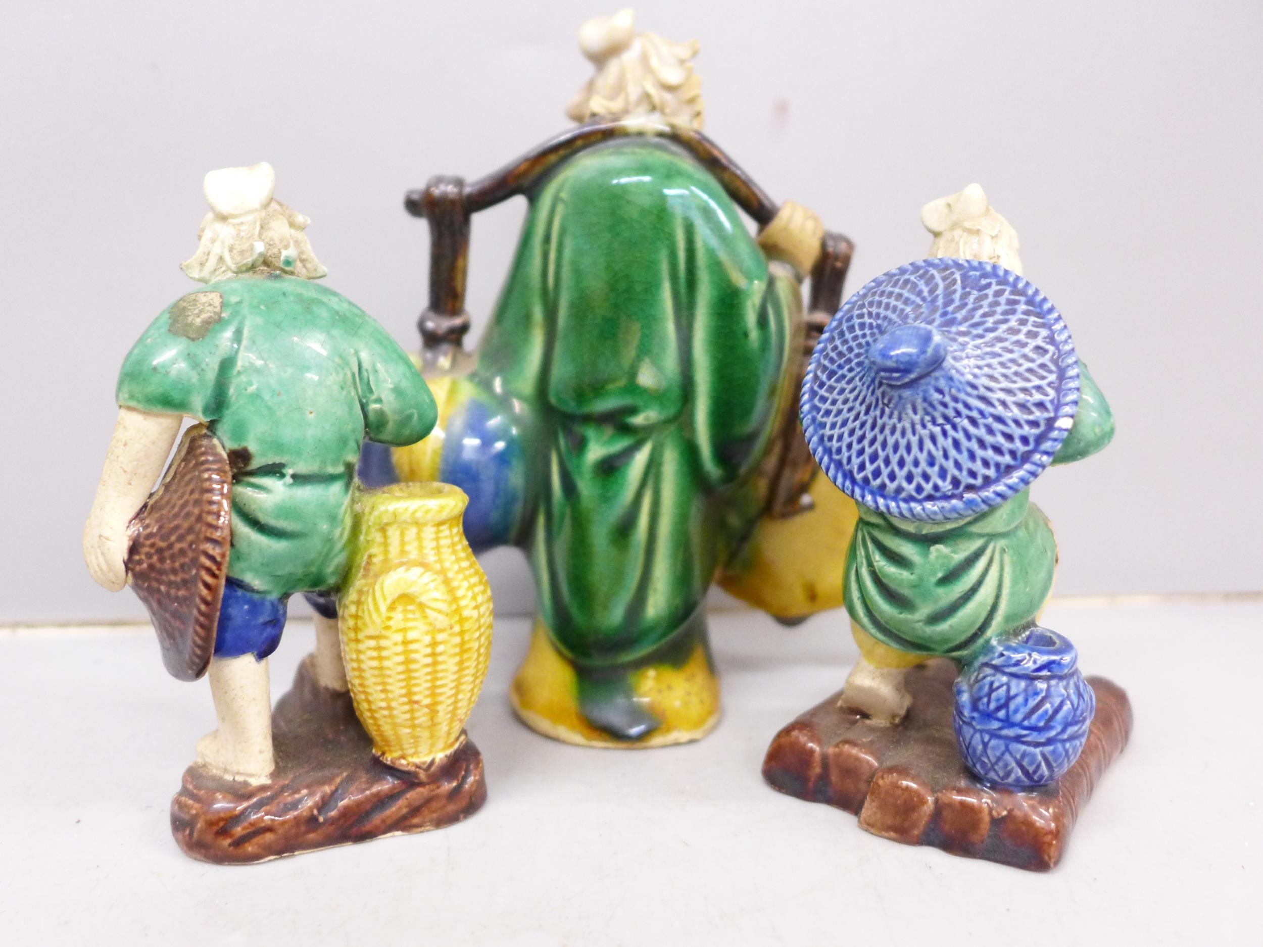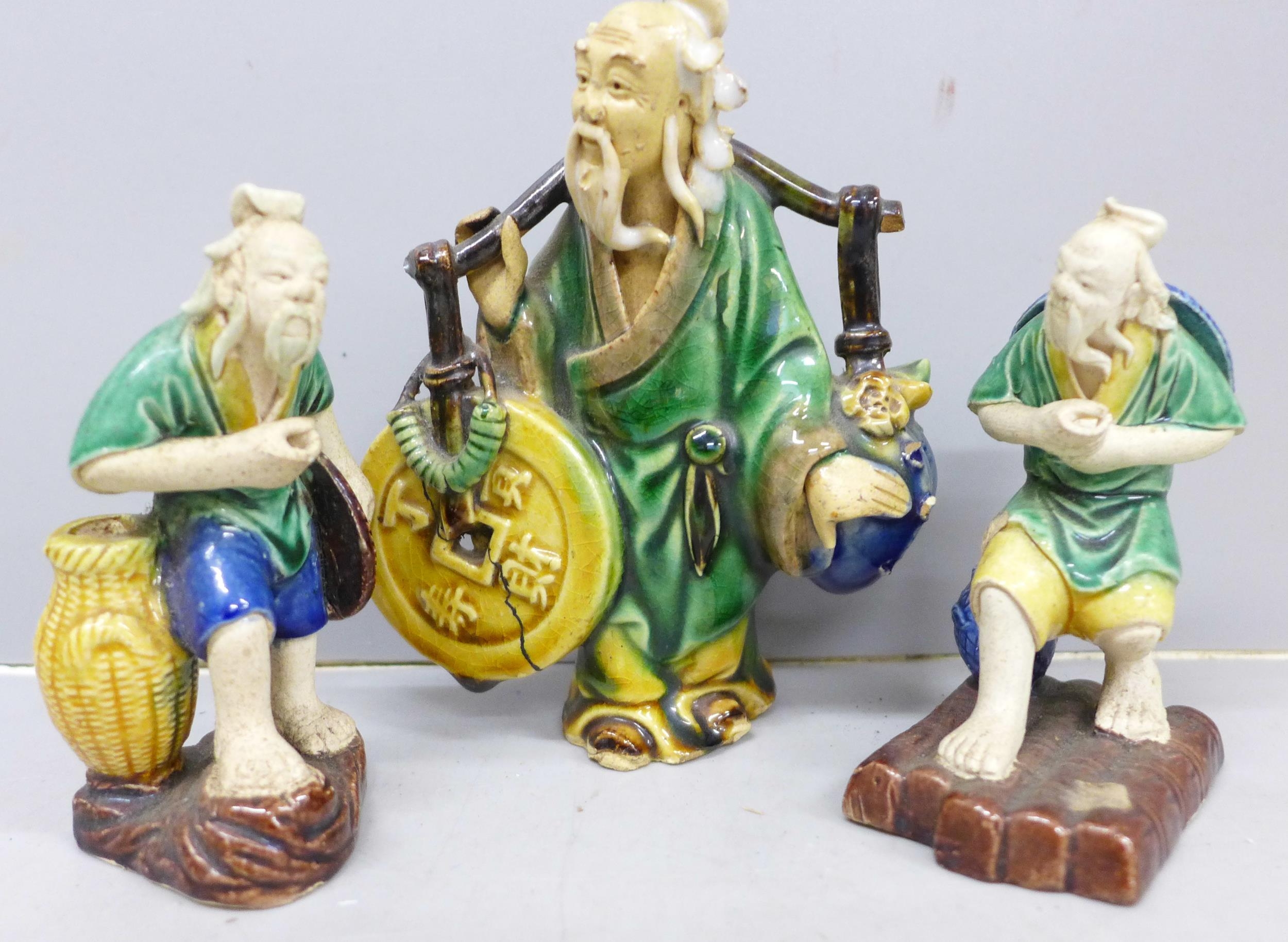 Three Oriental mud men figures, a/f