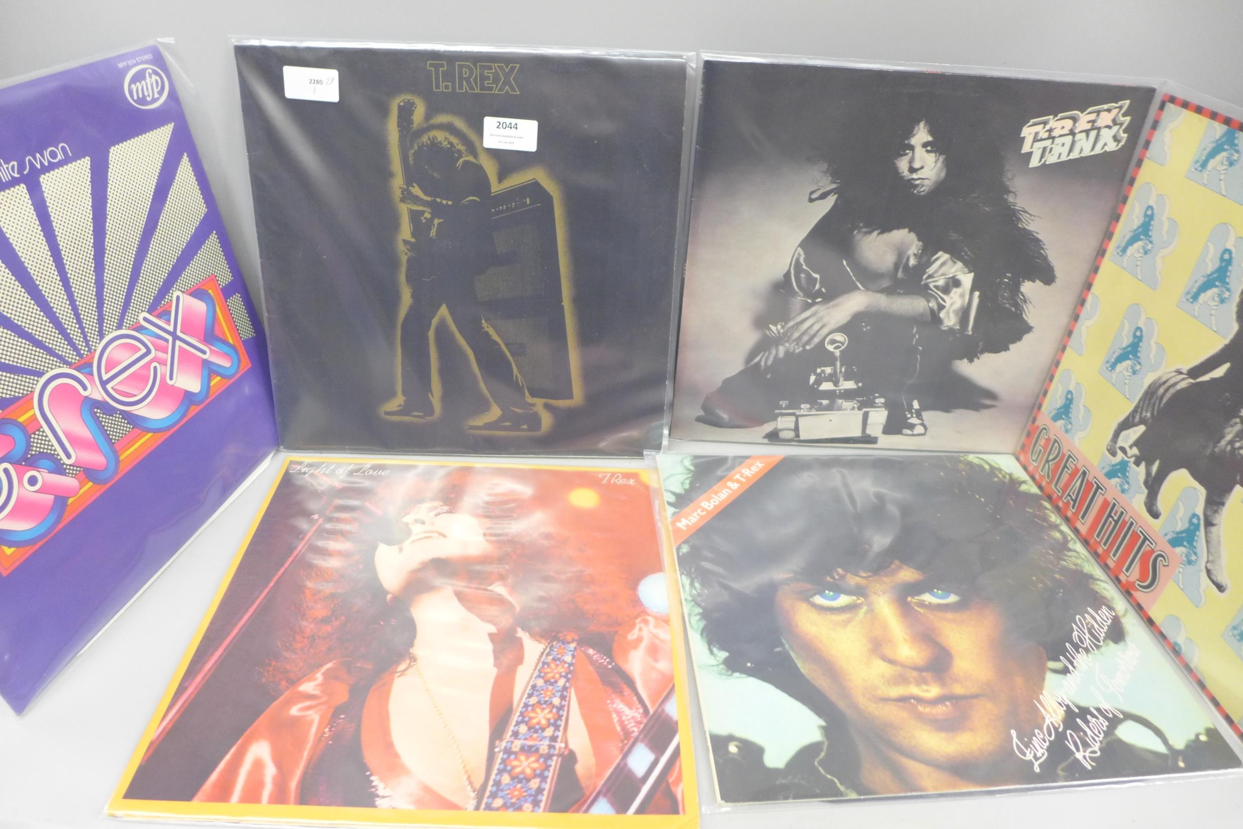 Eleven glam rock LP records, six T-rex including UK first pressings of Electric Warrior and Tanx and five Slade albums