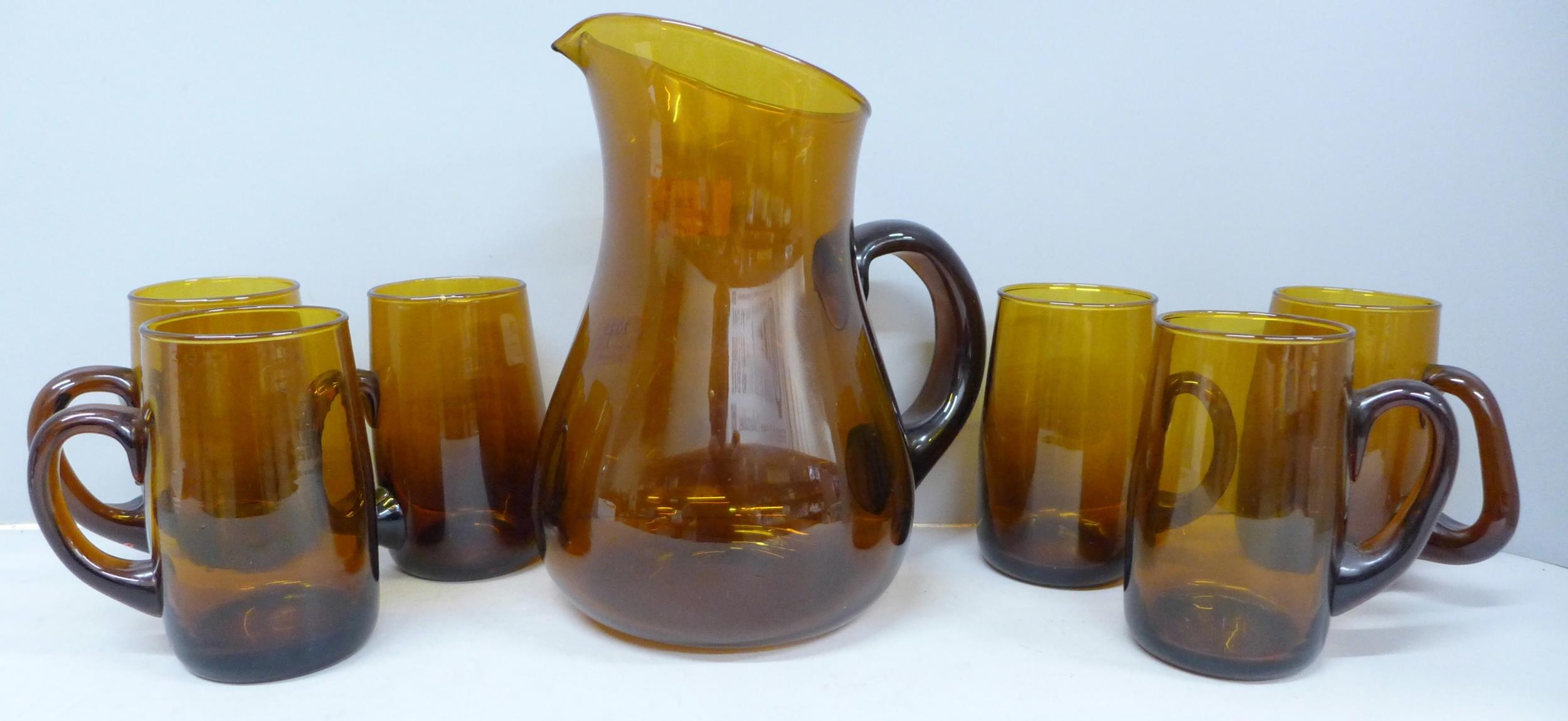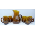 A Blenko hand blown amber glass lemonade set comprising of jug and six cups *THIS LOT IS NOT AVAILABLE FOR PACKING AND POSTING