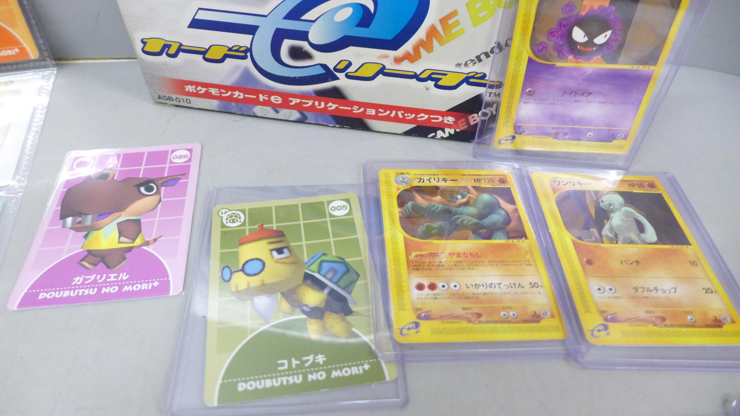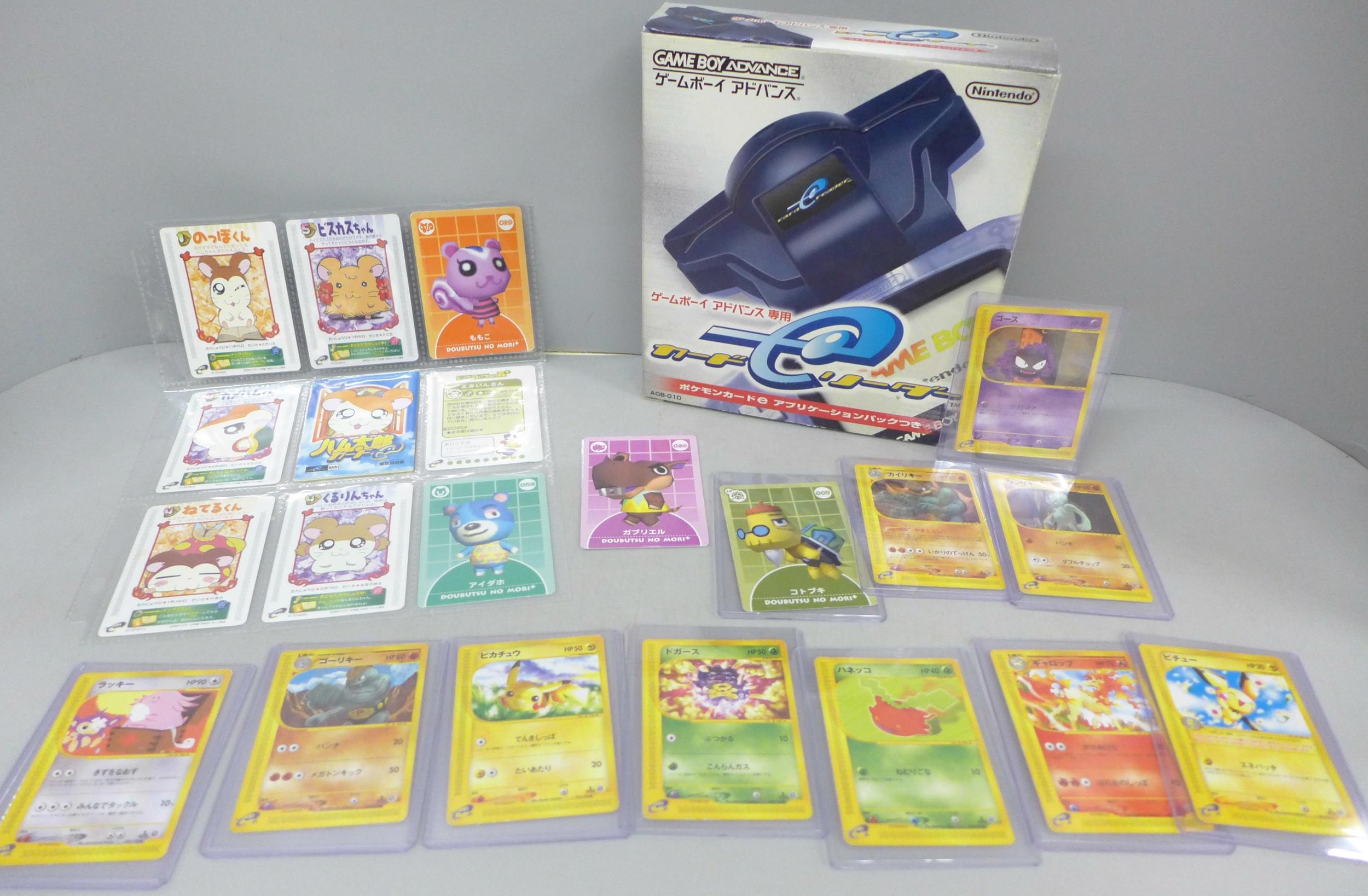 A Game Boy Advance card reader with readable Pokémon cards
