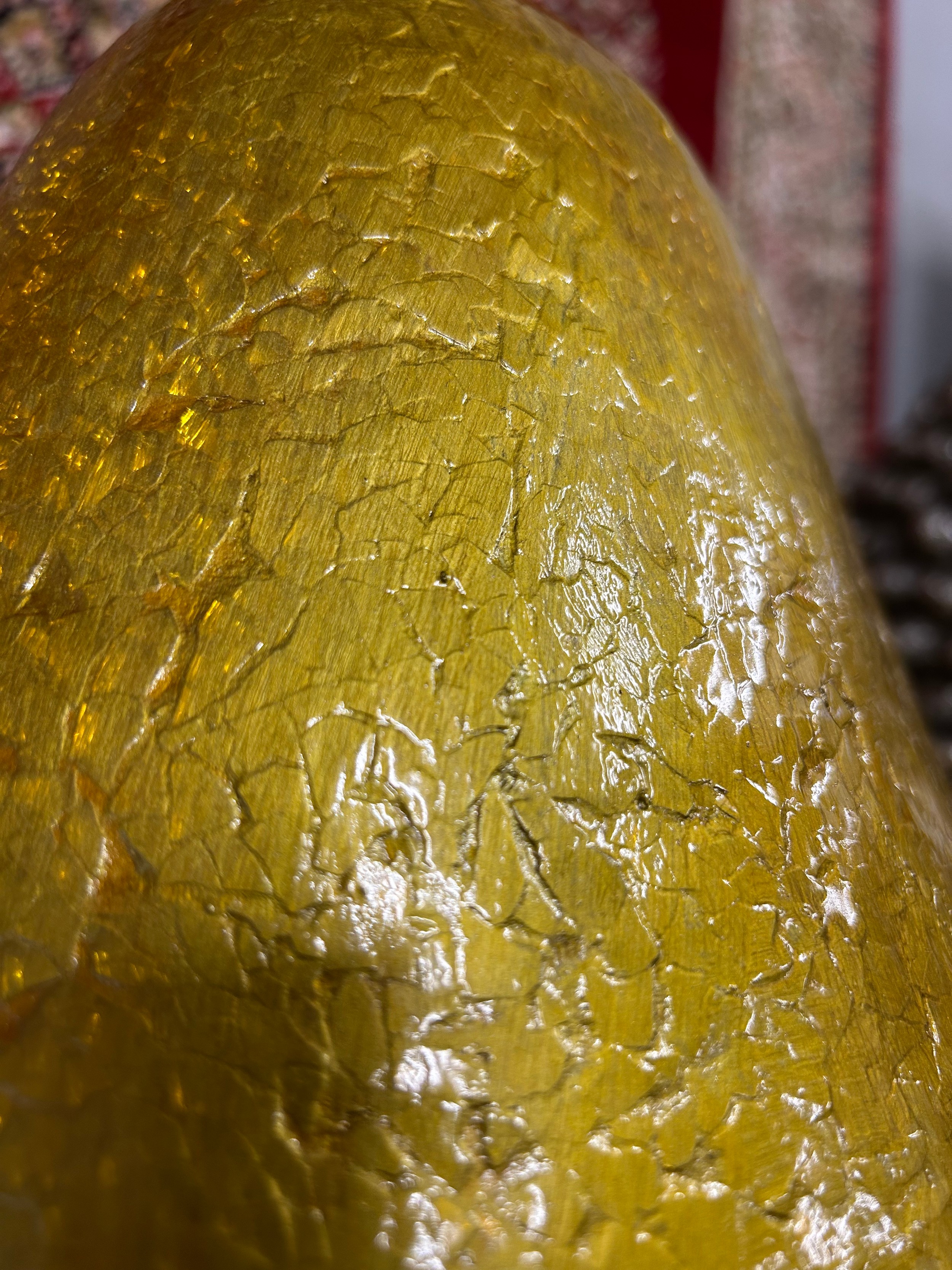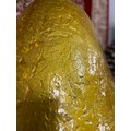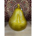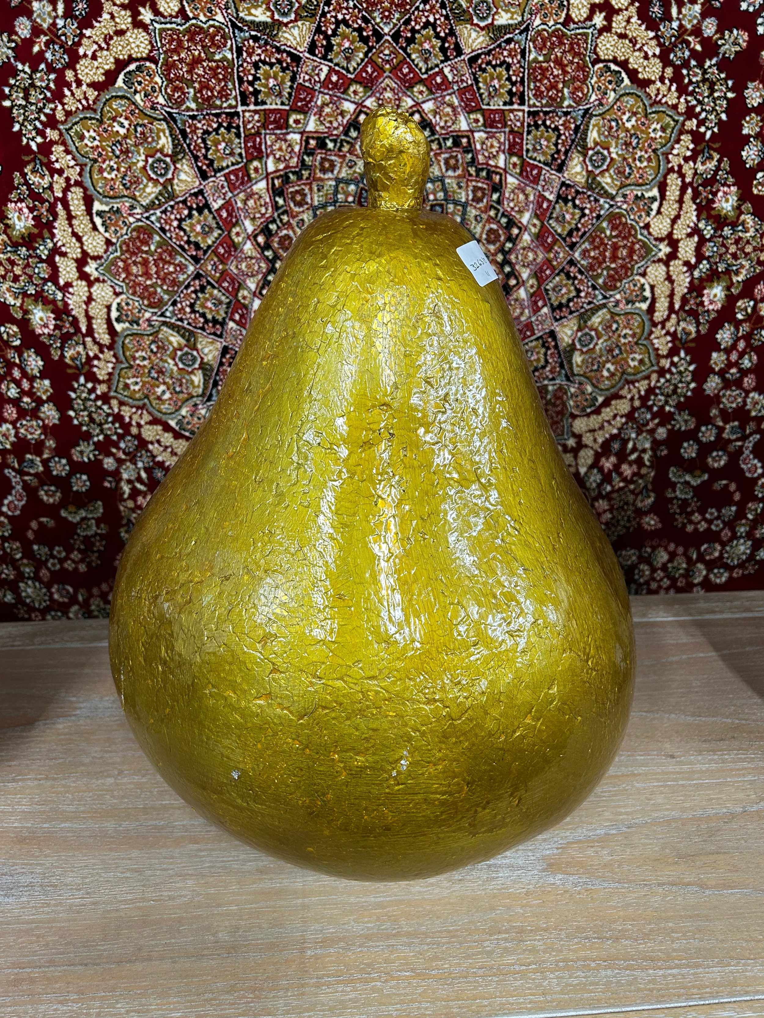 A large decorative golden pear