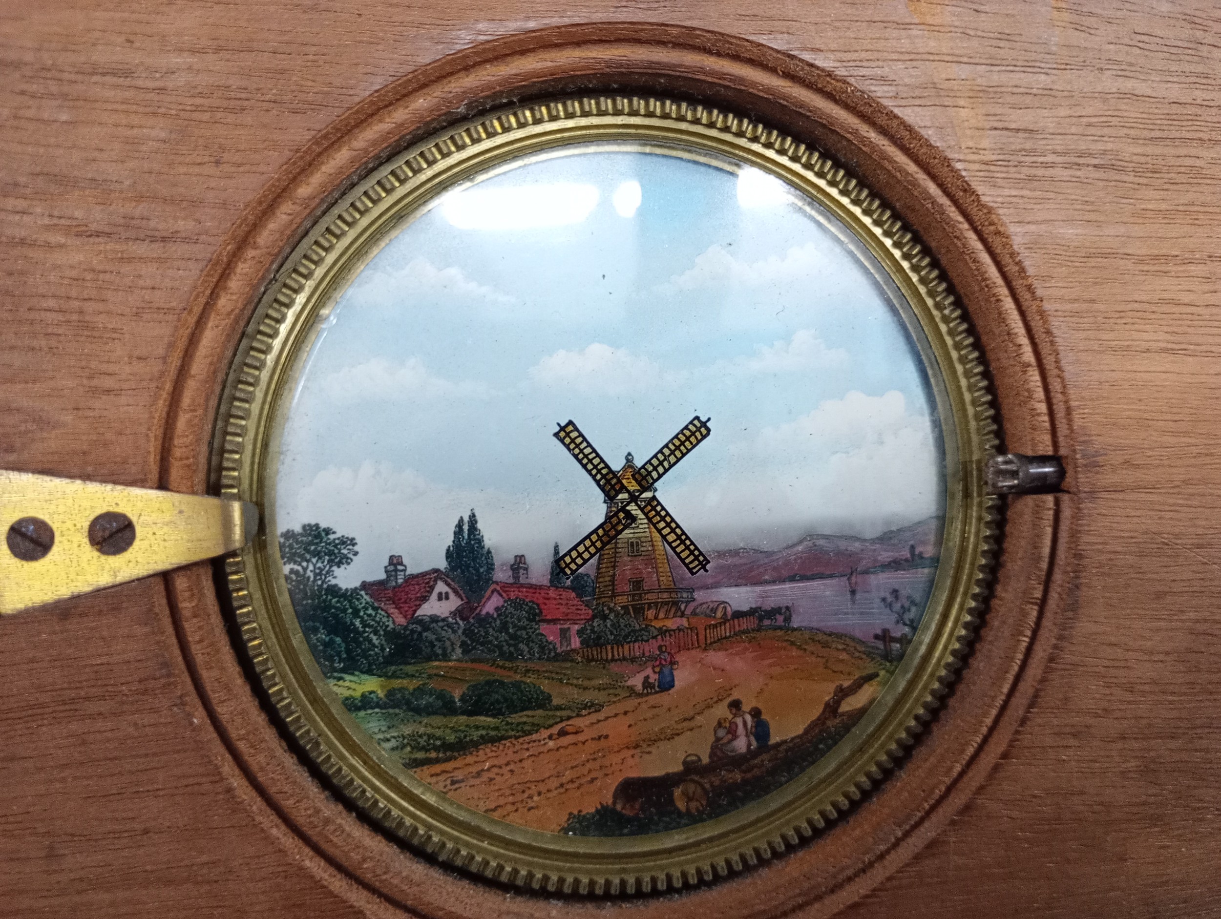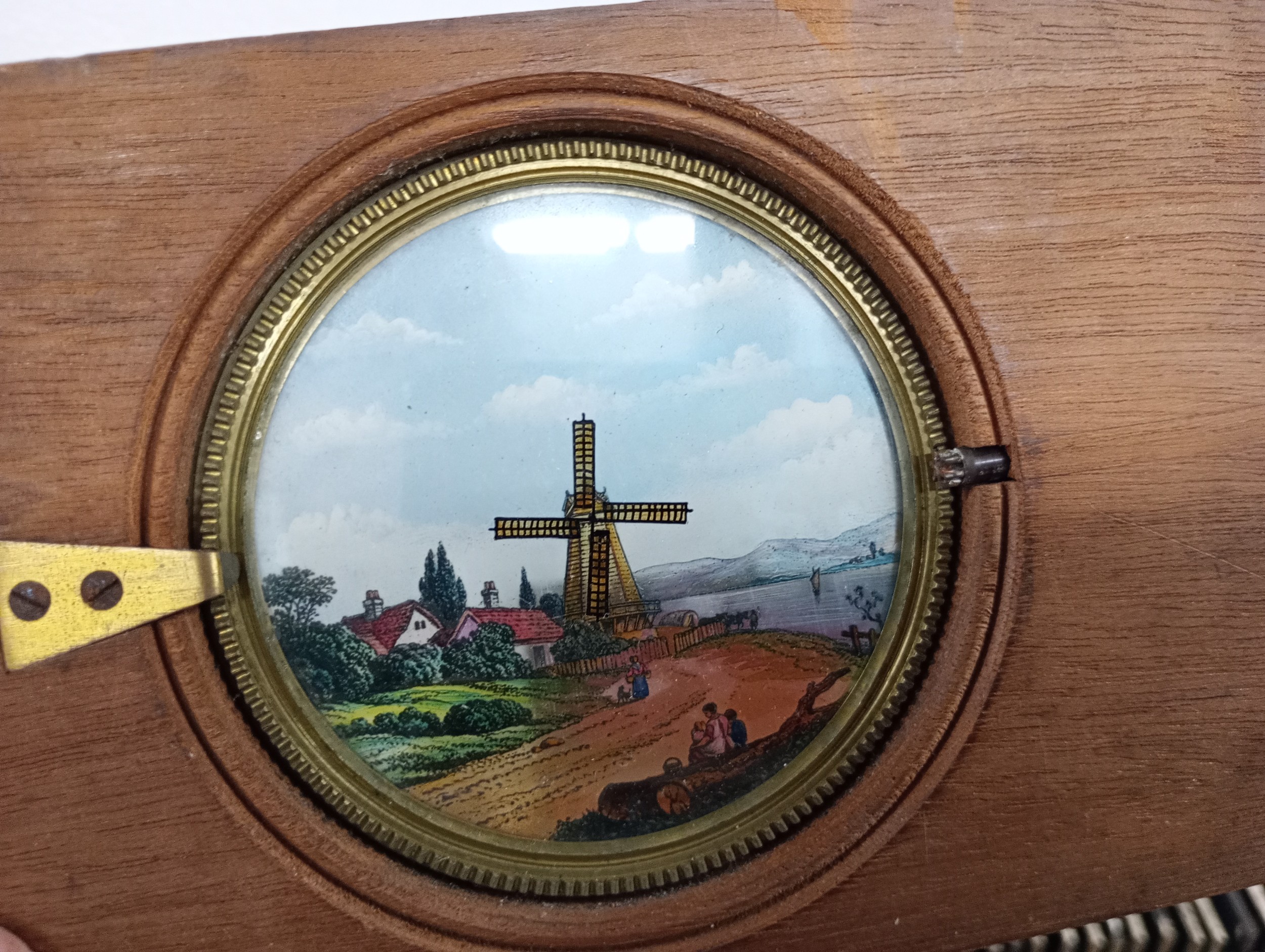 A large 19th Century wooden and brass magic lantern with thr...