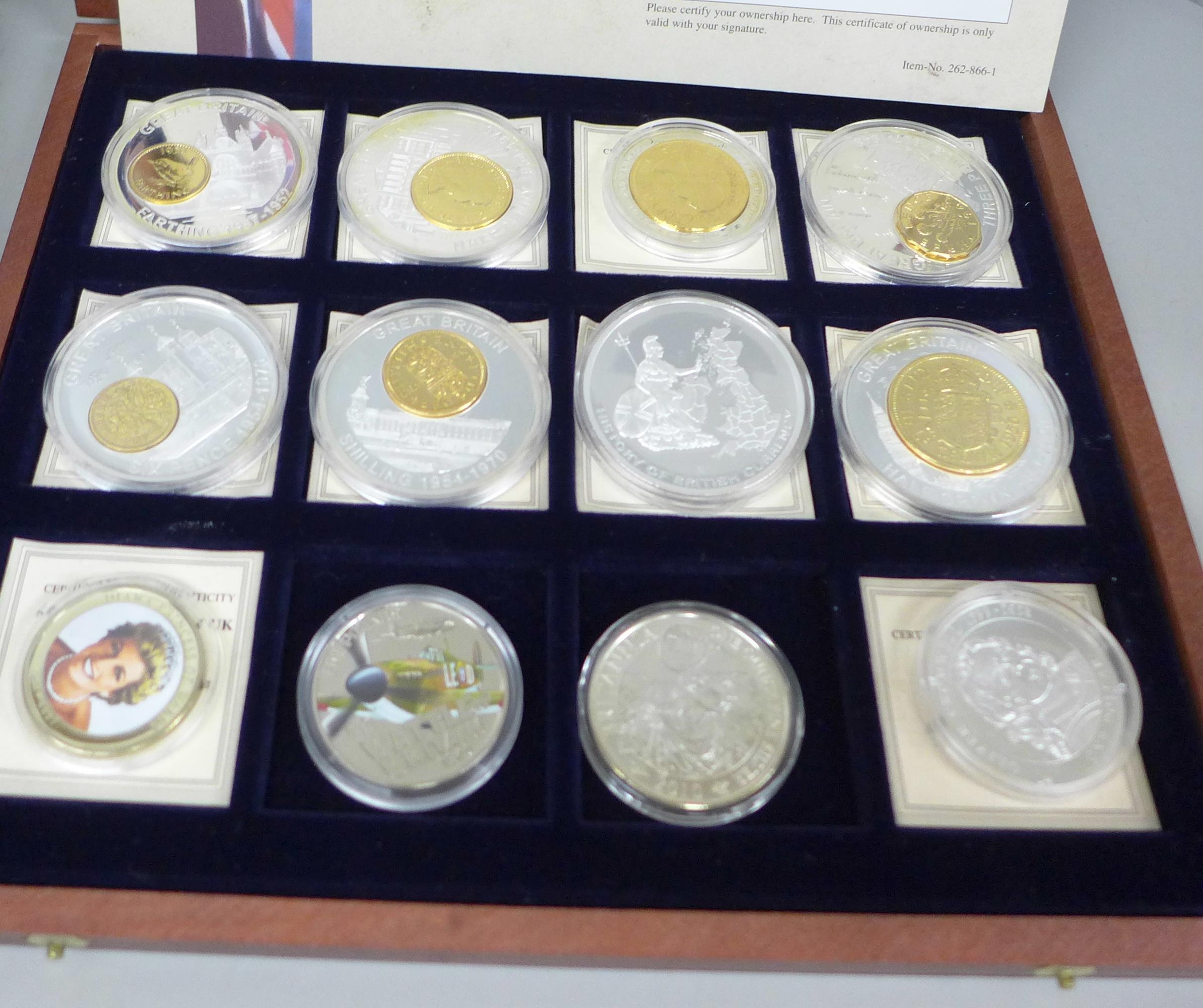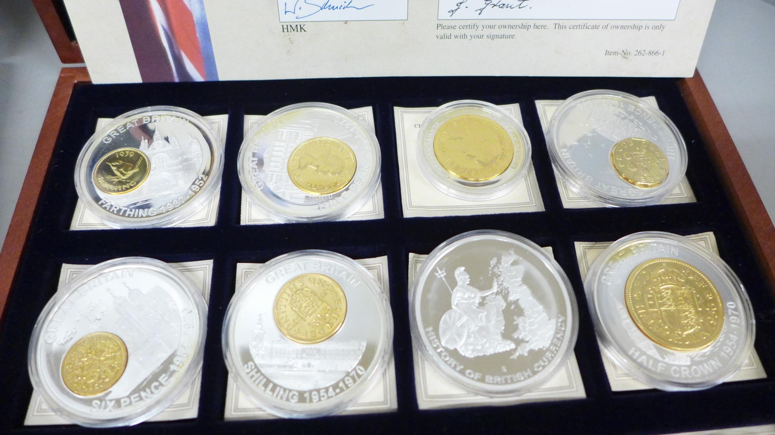 Coins; five The History of the Royal Family and Pre-decimalisation coins, cased