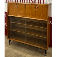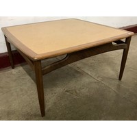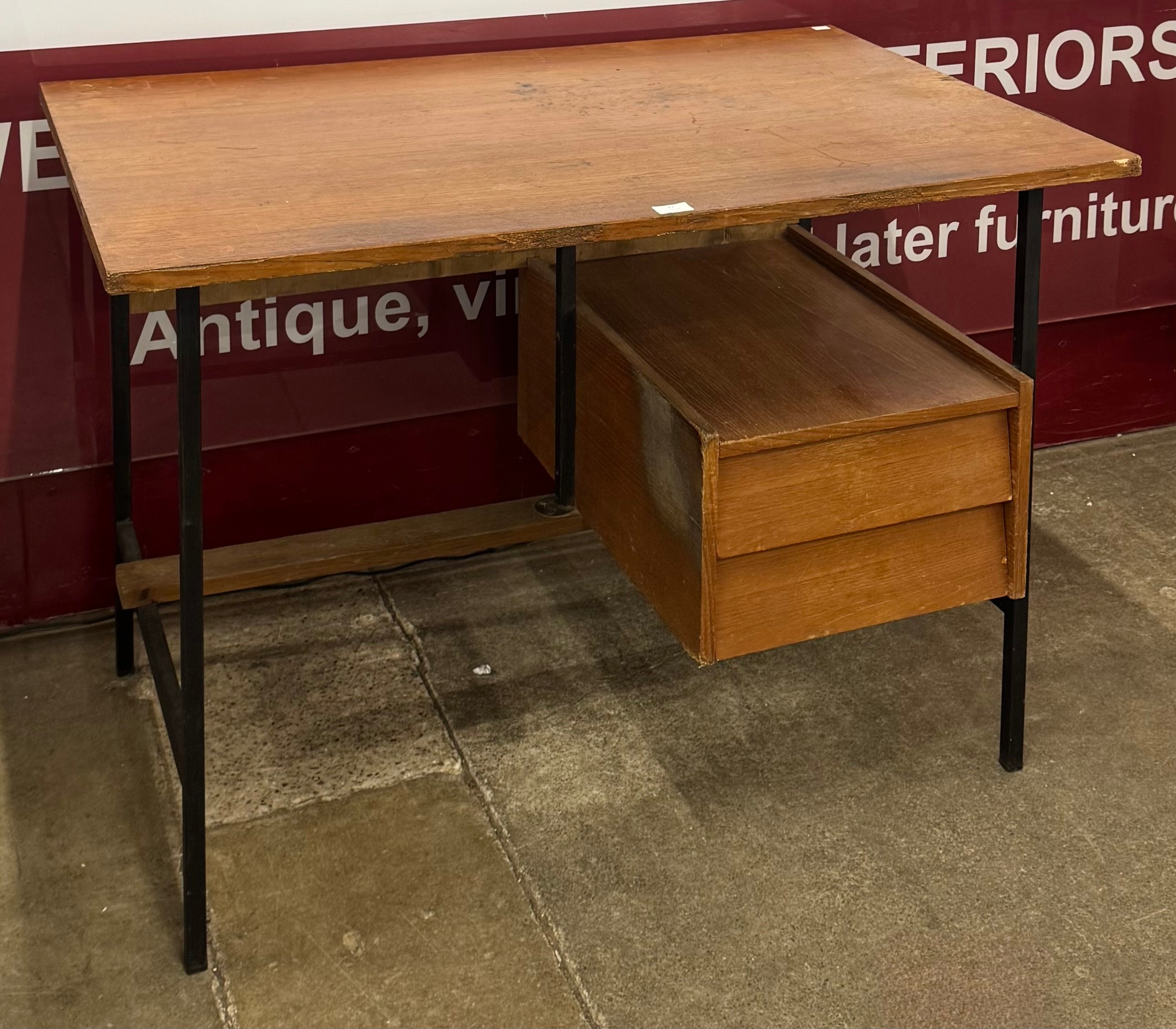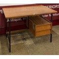 A teak and black tubular metal desk