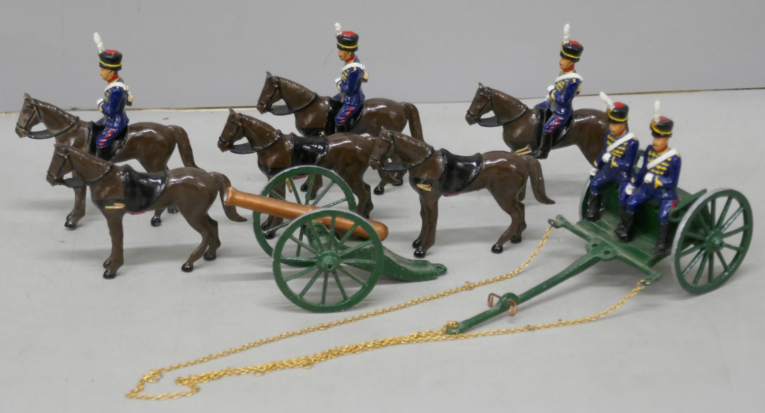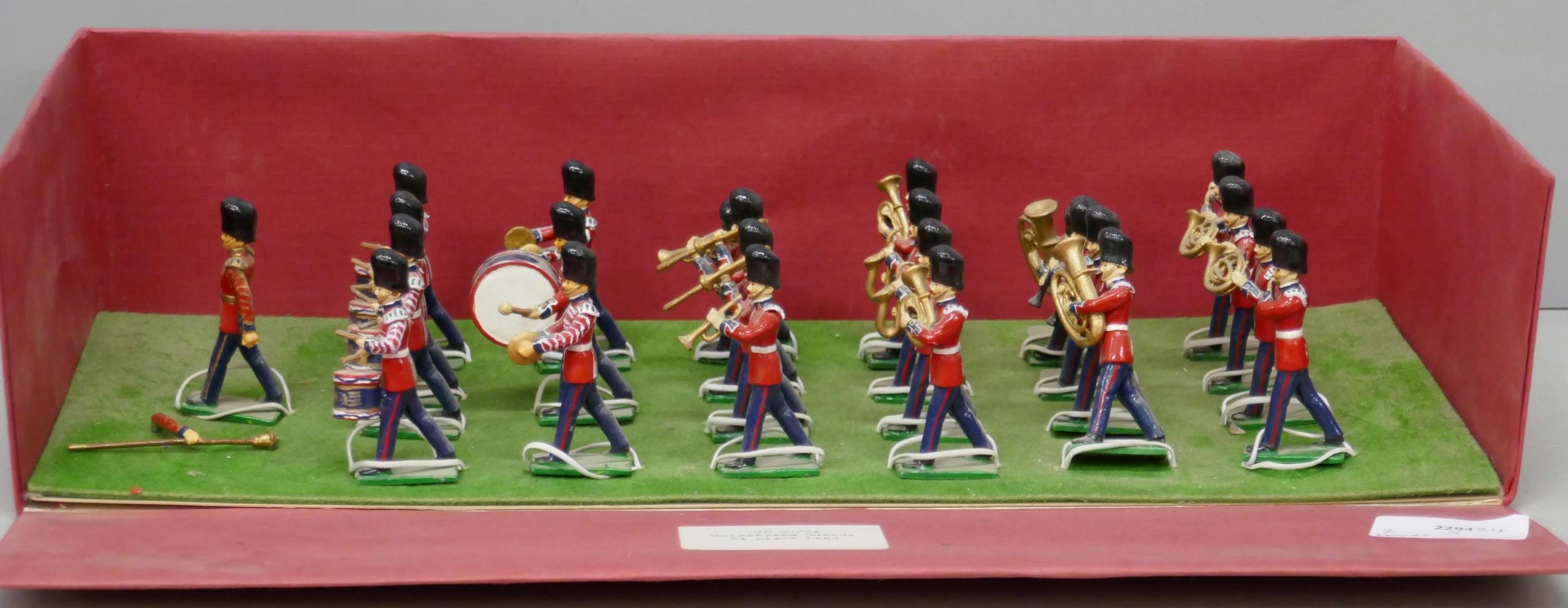 A collection of lead Coldstream Guards figures, together with horse-drawn gun carriage, 2 boxes