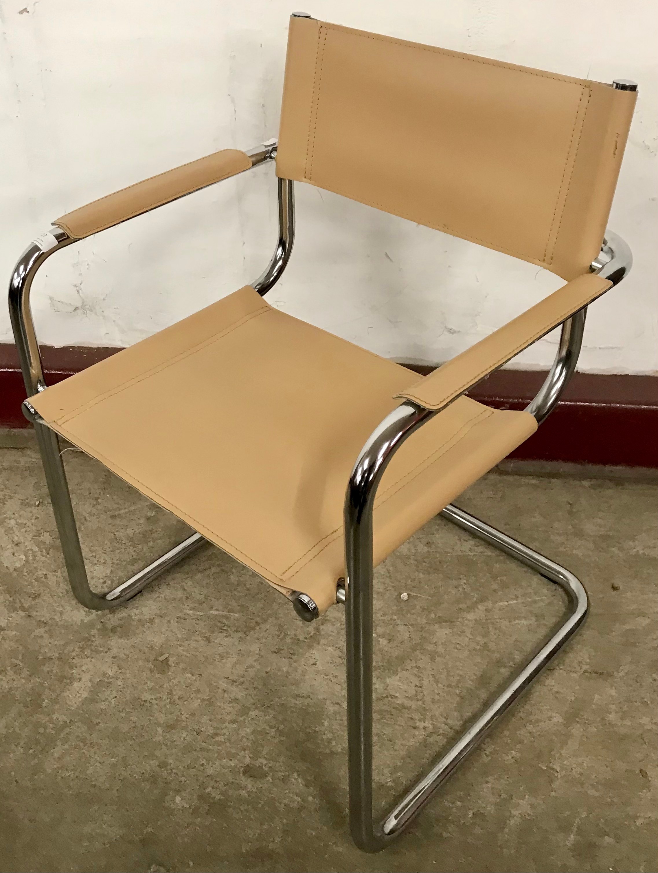 An Italian chrome and taupe leather cantilever armchair, manner of Marcel Bruer